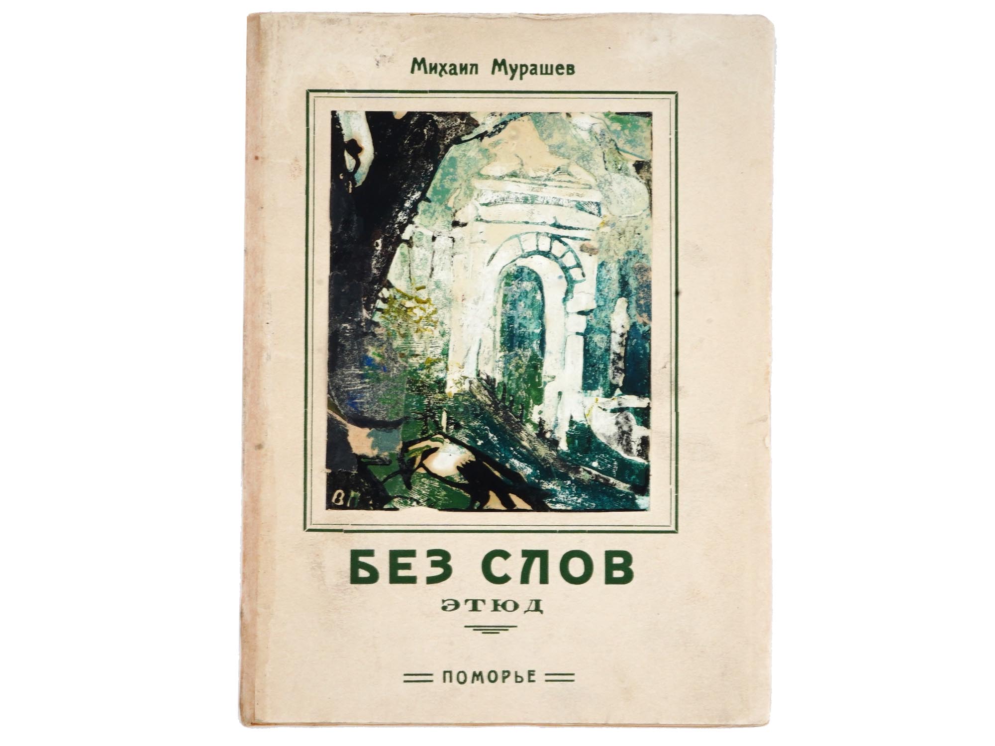 A Russian, early Soviet, book, Without Words: Etude, by Mikhail Murashev. In the illustrated cover of the publisher. The cover and six drawings are watercolors by the artist V.N. Prokofiev. The stamp of the publishing house by the artist N.N. Vysheslavtsev. Moscow, publishing house Pomorie, 1922. Mikhail Pavlovich Murashev, 1884 to 1958, was a journalist and publisher. Was in friendship with S. Yesenin. Antiquarian Librarian Books, Russian Soviet Era Illustrated Books and Collectibles.