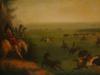 Oil on board painting. In the manner of George Catlin, 1796 to 1872, an American traveler and artist who specialized in portraits of Native Americans in the Old West. The piece represents a panoramic view of a buffalo hunt. Unsigned. Wooden frame. Collectible Fine Art, Landscape, Americana.